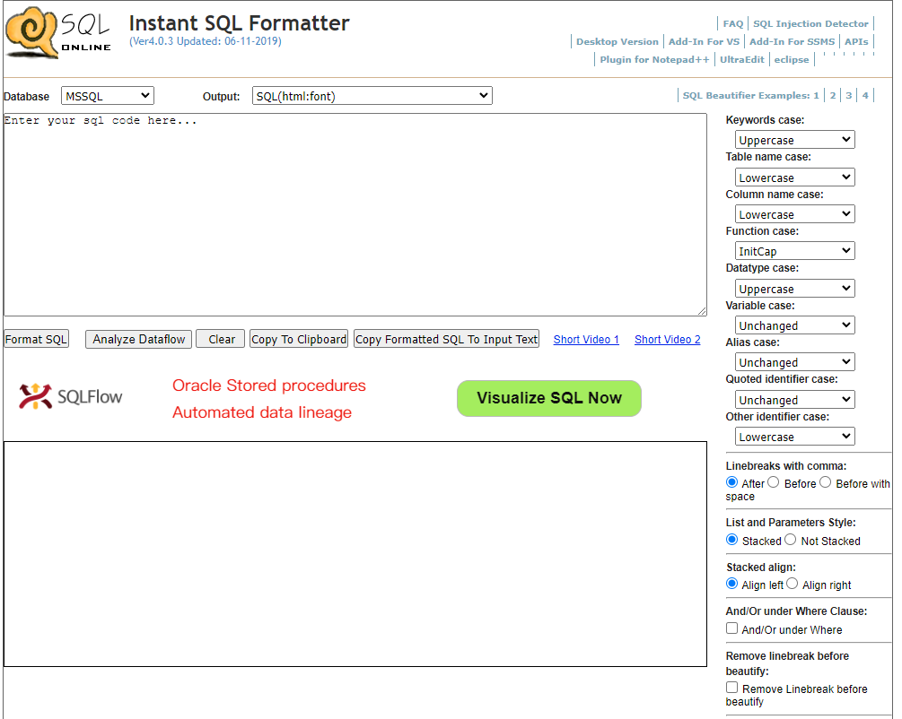 DPRiver는 다양한 데이터베이스 언어를 지원하는 SQL 포맷팅 도구입니다. MS ACCESS, DB2, MSSQL, MySQL, Oracle/PLSQL, MDX, Generic 등 다양한 데이터베이스 언어의 SQL 쿼리를 정돈해 줍니다. SQL 개발자들에게는 필수적인 도구로, 복잡한 쿼리도 쉽게 읽고 이해할 수 있게 해 줍니다.